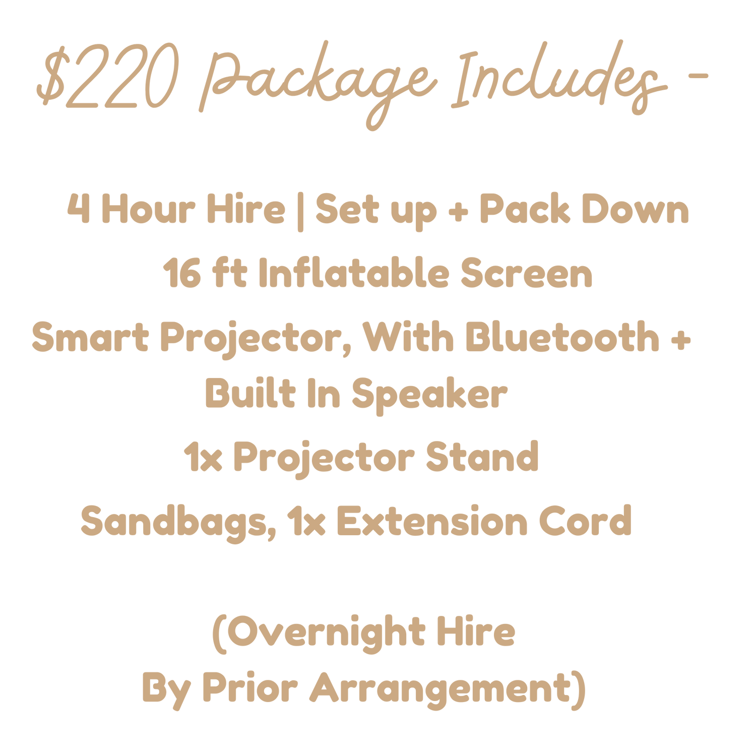 ● 1x 16 ft inflatable screen ( 4m wide x 2.7 high)